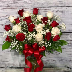 Price: $89.99Dozen long Stemmed Red Roses with Baby's Breath